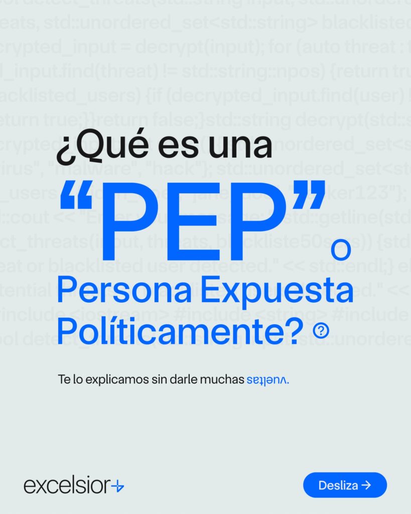 Una Persona Expuesta Políticamente (PEP) es alguien que ocupa o ha ocupado, en los últimos tres años, un cargo público de alto nivel, ya sea por elección o nombramiento, a nivel nacional o internacional. Esto incluye a los funcionarios que deben presentar declaración jurada de patrimonio y otras posiciones de relevancia según la normativa local.